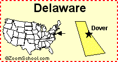 Delaware is a state in the eastern United States of America. Its capital is Dover. Delaware was the first state to ratify the United States constitution (on December 7, 1787).
