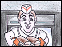 A baker bakes food in an oven, like breads, cakes, and cookies.