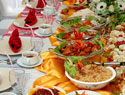 banquet | ['bæηkwit] |  | danh từ | | |  | bữa ăn trọng thể chuẩn bị công phu, nhân một sự kiện đặc biệt và có đọc diễn văn; tiệc lớn | | |  | a wedding banquet | | | tiệc cưới |  | ngoại động từ | | |  | thết (ai) tiệc lớn |