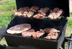 hiệu chả cá, quán chả nướng; phòng ăn thịt nướng (ở quán ăn) ((cũng) grill room)