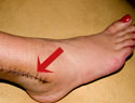 sẹo, vết sẹo (của vết thương, ở cây tại chỗ có lá rụng)