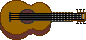 a musical instrument usually with six strings that you play by pulling the strings with your fingers or with a ↑plectrum (=small piece of plastic, metal etc)