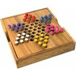 a board game in which each player tries to move a set of marbles through a set of holes from one point of a six-pointed star to the opposite point • Syn: Chinese chequers • Hypernyms: board game