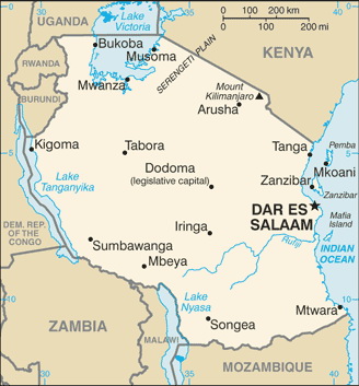 Dar es Salaam, capital of Tanzania, Dodoma, Tanganyika, Zanzibar,