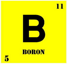 a trivalent metalloid element; occurs both in a hard black crystal and in the form of a yellow or brown powder • Syn: B, atomic number 5 • Derivationally related forms: boronic, boric • Hypernyms: chemical element, element • Substance Holonyms: kernite, borax