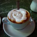 equal parts of espresso and hot milk topped with cinnamon and nutmeg and usually whipped cream