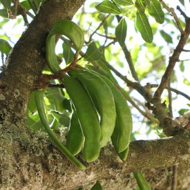 1. long pod containing small beans and sweetish edible pulp; used as animal feed and source of a chocolate substitute • Syn: carob bean, algarroba bean, algarroba, locust bean, locust pod • Hypernyms: bean • Substance Holonyms: carob powder, Saint-John's-bread • Part Holonyms: carob tree, carob bean tree, algarroba, Ceratonia siliqua 2. evergreen Mediterranean tree with edible pods; the biblical carob • Syn: carob tree, carob bean tree, algarroba, Ceratonia siliqua • Hypernyms: bean tree • Member Holonyms: Ceratonia, genus Ceratonia • Part Meronyms: carob bean, algarroba bean, algarroba, locust bean, locust pod 3. powder from the ground seeds and pods of the carob tree; used as a chocolate substitute • Syn: carob powder, Saint-John's-bread • Hypernyms: foodstuff, food product • Substance Meronyms: carob bean, algarroba bean, algarroba, locust bean, locust pod