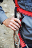 belt attaching you to some object as a restraint in order to prevent you from getting hurt