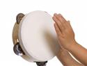 a shallow drum with a single drumhead and with metallic disks in the sides