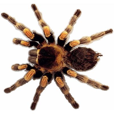 2. large hairy tropical spider with fangs that can inflict painful but not highly venomous bites