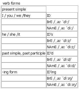 ID [ID] noun, verb BrE [ˌaɪ ˈdiː] NAmE [ˌaɪ ˈdiː] noun 1. uncountable, countable the abbreviation for ‘identity ’ or ‘identification ’ (an official way of showing who you are, for example a document with your name, date of birth and often a photograph on it) •You must carry ID at all times. •The police checked IDs at the gate. •an ID card 2. countable ↑identification •The police need a witness to make a positive ID. see also ↑caller ID Example Bank: •The government is trying to introduce compulsory ID cards. •You will need some form of photo ID. verb (ID's, ID'ing, ID'd, ID'd)(informal) = ↑identify Verb forms: