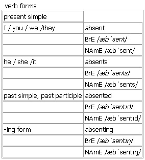 verb BrE [æbˈsent] ; NAmE [æbˈsent] ~ yourself (from sth) (formal)