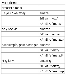 amaze [amaze amazes amazed amazing] BrE [əˈmeɪz] NAmE [əˈmeɪz] verb to surprise sb very much •~ sb Just the size of the place amazed her. •~ sb what, how, etc… It never ceases to amaze me what some people will do for money. •What amazes me is how long she managed to hide it from us. •it amazes sb that…/to see, find, learn, etc. It amazed her that he could be so calm at such a time. Verb forms: Word Origin: Old English āmasian, of unknown origin. Thesaurus: amaze verb T •The size of the place amazed her. astonish • • astound • • stagger • • bowl sb over • • surprise • • startle • • stun • |written take sb aback • It amazes sb/astonishes sb/astounds sb/staggers sb/surprises sb/startles sb/stuns sb/bowls sb over/takes sb aback What amazes/astonishes/astounds/staggers/surprises/startles/stuns sb is… amaze/astonish/astound/surprise/startle/stun sb that… amaze/astonish/astound/surprise/startle/stun sb to know/find/learn/see/hear… Amaze or astonish? In most cases you can use either word, but for sth that both surprises you and makes you feel ashamed, use astonish •He was astonished by his own stupidity. Synonyms: surprise startle • amaze • stun • astonish • take sb aback • astound These words all mean to make sb feel surprised. surprise • to give sb the feeling that you get when sth happens that you do not expect or do not understand, or sth that you do expect does not happen; to make sb feel surprised: ▪ The outcome didn't surprise me at all. startle • to surprise sb suddenly in a way that slightly shocks or frightens them: ▪ Sorry, I didn't mean to startle you. ◇ ▪ The explosion startled the horse. amaze • to surprise sb very much: ▪ Just the huge size of the place amazed her. stun • (rather informal) (often in newspapers) to surprise or shock sb so much that they cannot think clearly or speak astonish • to surprise sb very much: ▪ The news astonished everyone. amaze or astonish? These two words have the same meaning and in most cases you can use either. If you are talking about sth that both surprises you and makes you feel ashamed, use astonish: ▪ He was astonished by his own stupidity. take sb aback • [usually passive] (especially of sth negative) to surprise or shock sb: ▪ We were rather taken aback by her hostile reaction. astound • to surprise or shock sb very much: ▪ His arrogance astounded her. It surprises sb/startles sb/amazes sb/stuns sb/astonishes sb/takes sb aback/astounds sb to surprise/startle/amaze/stun/astonish/astound sb that… to surprise/amaze sb what/how… to surprise/startle/amaze/stun/astonish/astound sb to know/find/learn/see/hear… to be surprised/startled/stunned into (doing) sth Example Bank: •It never ceases to amaze me what some people will do for money. •Just the huge size of the place amazed her. •What amazes me is how long she managed to hide it from us.