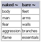 bare [bare bares bared baring barer barest] adjective, verb BrE [beə(r)] NAmE [ber] adjective (barer, bar·est) 1. not covered by any clothes •She likes to walk around in bare feet. •They wore shabby clothes and their feet were bare. see also ↑barefoot 2. (of trees or countryside)not covered with leaves; without plants or trees •the bare branches of winter trees •a bare mountainside •We looked out over a bare, open landscape, stripped of vegetation. 3. (of surfaces)not covered with or protected by anything •bare wooden floorboards •Bare wires were sticking out of the cable. •The walls were bare except for a clock. 4. (of a room, cupboard, etc.)empty •The fridge was completely bare. •bare shelves •a room bare of furniture 5. only before noun just enough; the most basic or simple •The family was short of even the bare necessities of life. •We only had the bare essentials in the way of equipment. •He did the bare minimum of work but still passed the exam. •She gave me only the bare facts of the case. •It was the barest hint of a smile. •Nothing more is known apart from the bare statement issued to the press. more at the cupboard is bare at ↑cupboard Word Origin: Old English bær (noun), barian (verb), of Germanic origin; related to Dutch baar. Thesaurus: bare adj. 1. •walking in bare feet naked • • nude • • undressed • • in the nude • sb's bare/naked skin/flesh/shoulder/thigh/torso completely/almost bare/naked/nude 2. •They spent a cold night on the bare mountainside. bare • • exposed • • bleak • • windswept • |written desolate • bare/bleak/desolate countryside/landscape/mountains a/an exposed/bleak/windswept/desolate coast/hillside 3. •bare wooden floorboards plain • |usually approving simple • • austere • |often disapproving stark • • severe • a bare/plain/simple interior bare/plain/simple/stark white… plain/simple/stark/severe black… 4. •Bare shelves greeted anxious shoppers. empty • • vacant • bare/empty of sth a/an bare/empty/vacant room a/an bare/empty cupboard Synonyms: plain simple • stark • bare • unequivocal These words all describe statements, often about sth unpleasant, that are very clear, not trying to hide anything, and not using more words than necessary. plain • used for talking about a fact that other people may not like to hear; honest and direct in way that other people may not like: ▪ The plain fact is that nobody really knows. simple • [only before noun] used for talking about a fact that other people may not like to hear; very obvious and not complicated by anything else: ▪ The simple truth is that we just can't afford it. plain or simple? When it is being used to emphasize facts that other people may not like to hear, plain is usually used in the expression the plain fact/truth is that… Simple can be used in this way too, but it can also be used in a wider variety of structures and collocations (such as reason and matter): ▪ The problem was due to the simple fact that… ◇ The problem was due to the plain fact that… ◇ for the plain reason that… ◇ It's a plain matter of… Expressions with simple often suggest impatience with other people's behaviour. stark • (rather formal) used for describing an unpleasant fact or difference that is very obvious: ▪ The stark truth is that there is not enough money left. The simple/plain truth may be sth that some people do not want to hear, but it may be good for them to hear it anyway. The stark truth is sth particularly unpleasant and has no good side to it at all. bare • [only before noun] the most basic or simple, with nothing extra: ▪ She gave me only the bare facts of the case. unequivocal • (formal) expressing your opinion or intention very clearly and firmly: ▪ The reply was an unequivocal ‘no’. the plain/simple/stark/bare/unequivocal truth a(n) plain/simple/stark/bare/unequivocal fact/statement a(n) plain/simple/unequivocal answer Synonyms: naked / bare Both these words can be used to mean ‘not covered with clothes’ and are frequently used with the following nouns: Naked is more often used to describe a person or their body and bare usually describes a part of the body. Bare can also describe other things with nothing on them: ▪ bare walls ◇ ▪ a bare hillside. Naked can mean ‘without a protective covering’: ▪ a naked sword. Bare can also mean ‘just enough’: ▪ the bare minimum. Naked can be used to talk about strong feelings that are not hidden: ▪ naked fear. Note also the idiom: ▪ (visible) to/with ▪ the naked eye. Example Bank: •The earth had been laid bare. •The house was almost bare of furniture. •The room looked strangely bare without the furniture. •The room was completely bare. •The walls have been stripped bare. •You shouldn't have left the wires bare. •At many stores bare shelves greeted shoppers. •His bare legs were covered in wiry golden hairs. •She likes to walk around in bare feet. •The flowers stood out like jewels against the dark, bare soil. •The only lighting was a bare bulb hanging from the ceiling. •The walls were bare except for a small mirror. •The windows looked out onto a bare field. •The winter sun filtered through the bare branches of the trees. •They found themselves in a huge bare hall. •They spent a cold night on the bare mountainside. •When she stood up she was completely bare. Idioms: ↑bare bones ▪ ↑bare your soul ▪ ↑bare your teeth ▪ ↑lay something bare ▪ ↑with your bare hands Derived Word: ↑bareness verb ~ sth to remove the covering from sth, especially from part of the body •She was paid several thousand dollars to bare all (= take all her clothes off) for the magazine. Verb forms: Word Origin: Old English bær (noun), barian (verb), of Germanic origin; related to Dutch baar.