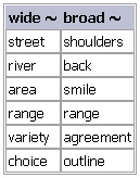 broad [broad broads broader broadest] adjective, noun BrE [brɔːd] NAmE [brɔːd] adjective (broad·er, broad·est) WIDE 1. wide •a broad street/avenue/river •broad shoulders • He is tall, broad and muscular. •a broad smile/grin (= one in which your mouth is stretched very wide because you are very pleased or amused) Opp: ↑narrow (1) 2. used after a measurement of distance to show how wide sth is •two metres broad and one metre high WIDE RANGE 3. including a great variety of people or things •a broad range of products •a broad spectrum of interests • There is broad support for the government's policies. •She took a broad view of the duties of being a teacher (= she believed her duties included a wide range of things). •a broad and balanced curriculum •We must ensure the project is of advantage to the broader community and does not just benefit a few individuals. Opp: ↑narrow GENERAL 4. only before noun general; not detailed •the broad outline of a proposal • The negotiators were in broad agreement on the main issues. • She's a feminist, in the broadest sense of the word. •In broad terms, the paper argues that each country should develop its own policy. •Computer viruses fall into three broad categories. LAND/WATER 5. covering a wide area •a broad expanse of water •the broad plains of the American West ACCENT 6. if sb has a broad accent, you can hear very easily which area they come from Syn: ↑strong •a broad Yorkshire accent HINT 7. if sb gives a broad hint, they make it very clear what they are thinking or what they want HUMOUR 8. (NAmE)dealing with sex in an amusing way •The movie mixes broad humor with romance. more at paint sth with a broad brush at ↑paint v. Word Origin: Old English brād, of Germanic origin; related to Dutch breed and German breit. Thesaurus: broad adj. 1. (often approving, especially written) •He's got broad shoulders. wide • Opp: narrow a broad/wide road/street/river/stream/staircase a broad/wide mouth/smile/grin Broad or wide? Broad is often used to suggest that sth is wide in an attractive way •a broad avenue lined with trees . It is also used rather than wide to talk about parts of the body •a broad back/chest/face/forehead 2. •The course caters for a broad spectrum of interests. wide • • extensive • • widespread • • general • • universal • • diverse • • mass • • large-scale • • sweeping • • far-reaching • |written wide-ranging • |often approving varied • Opp: narrow a/an broad/wide/extensive range a/an broad/extensive/general/diverse/mass/large-scale/sweeping/far-reaching/wide-ranging/varied programme broad/wide/extensive/widespread/general/universal/mass/large-scale support Broad or wide? Broad is used more to talk about the affect of sth on a large number of people: •have a broad appeal • attract broad support Broad also often relates to knowledge, education and business: •a broad curriculum • broad experience/knowledge Wide is used more to talk about a choice or a range of things or people and also for a geographical area: •The festival attracts people from a wide area. ✗ The festival attracts people from a broad area. 3. •the broad outline of a proposal general • • sweeping • • overall • • rough • • approximate • a broad/general/rough outline a broad/general/sweeping assertion/conclusion/statement in broad/general/overall terms a broad/sweeping generalization Word Family: broad adjective broadly adverb broaden verb breadth noun Synonyms: wide / broad These adjectives are frequently used with the following nouns: Wide is the word most commonly used to talk about something that measures a long distance from one side to the other. Broad is more often used to talk about parts of the body. (Although wide can be used with ▪ mouth.) It is used in more formal or written language to describe the features of the countryside, etc: ▪ a broad river ◇ ▪ a broad stretch of meadowland. Both wide and broad can be used to describe something that includes a large variety of different people or things: ▪ a wide/broad range of products. Broad, but not wide, can be used to mean ‘general’ or ‘not detailed’: ▪ All of us are in broad agreement on this matter. Example Bank: •He questioned whether the school curriculum was broad enough in scope. •His job gave him an acquaintance with an unusually broad spectrum of society. •‘Mental handicap’ should be replaced with the broader concept of ‘learning difficulties’. •Before dealing with specific cases she spoke on the broad topic of ‘discipline’. •Having children gave her a broader outlook on life. •He turned to me with a broad smile. •He was gorgeous— broad shoulders and twinkling eyes. •He's got broad shoulders. •In broad terms the paper argues that each country should develop its own policy. •She took a broad view of the duties of being a teacher. •She's a feminist, in the broadest sense of the word. •The committee put forward broad recommendations for the improvement of safety at sports grounds. •The course caters for a broad spectrum of interests. •The novel is about education in its broadest sense. •The proposals have been given a broad welcome by green campaigners. •The wardrobe stands at one metre broad and two metres high. •There is broad support amongst clients for the new initiative. •There is broad support for the government's policies. •We discussed the broader implications of the plan. •We drove down a broad avenue lined with trees. •We have devised a broad and balanced curriculum. •We must ensure the project is of advantage to the broader community and does not just benefit a few individuals. •a broad aim/objective •a broad back/chest/face/forehead •a broad category/area •a broad curriculum •a broad definition/sense/outline •broad experience/knowledge •to attract broad support •to have a broad appe