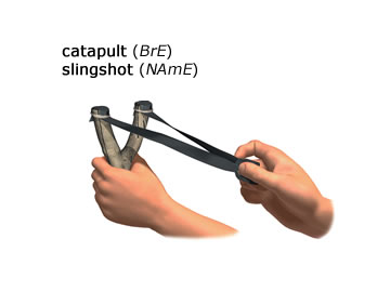 1. (BrE) (NAmE sling·shot)a stick shaped like a Y with a rubber band attached to it, used by children for shooting stones