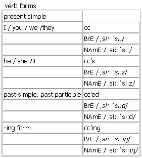 cc [cc] abbreviation, verb BrE [ˌsiː ˈsiː] NAmE [ˌsiː ˈsiː] abbreviation 1. carbon copy (to) (used on business letters and emails to show that a copy is being sent to another person) •to Luke Peters, cc Janet Gold 2. cubic centimetre(s) •an 850cc engine verb (cc's, cc'ing, cc'ed, cc'edBrE [ˌsiː ˈsiːd] ; NAmE [ˌsiː ˈsiːd] )~ sth (to sb) | ~ sb sth (informal) to send sb a copy of a letter or email message that you are sending to sb else •Her message was sent to the company president and cc'ed to us. •Please don't cc me on your emails. My mailbox is full enough. Verb forms: