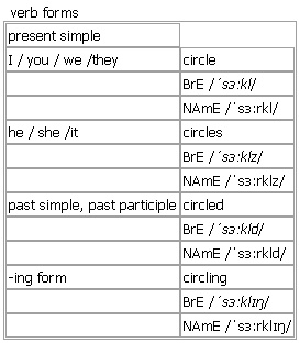 cir·cle [circle circles circled circling] noun, verb BrE [ˈsɜːkl] NAmE [ˈsɜːrkl] noun  1. a completely round flat shape • Cut out two circles of paper. see also ↑semicircle 2. the line that forms the edge of a circle • Draw a circle. • She walked the horse round in a circle. see also ↑Antarctic Circle, ↑Arctic Circle, ↑turning circle 3. a thing or a group of people or things shaped like a circle •a circle of trees/chairs • The children stood in a circle. see also ↑corn circle, ↑crop circle 4. (BrE) (also bal·cony NAmE, BrE)an upper floor of a theatre or cinema/movie theater where the seats are arranged in curved rows • We had seats in the circle. see also ↑dress circle 5. a group of people who are connected because they have the same interests, jobs, etc •the family circle •She's well known in theatrical circles. •a large circle of friends see also ↑charmed circle, ↑inner circle, ↑vicious circle Word Origin: Old English, from Old French cercle, from Latin circulus ‘small ring’, diminutive of circus ‘ring’. Thesaurus: circle noun C •They stood in a circle. ring • • hoop • • disc • |especially AmE disk • in a circle/ring through a circle/hoop/disc/disk concentric circles/rings Example Bank: •He turned the car in a tight circle. •He's joined the inner circles of the court early in his career. •How long does it take for the dial to rotate through a full circle? •If you follow the road signs you will simply find yourself going round in a circle. •If you follow the signs you find yourself going around in a circle. •My brother and I move in completely different circles. •My seat is in the front row of the dress circle. •She has a wide circle of acquaintances. •She moves in the highest social circles. •Talk of religion was forbidden in the family circle. •The planets move in circles around the sun. •The stones form a complete circle. •The water rippled in widening circles around the fountain. •They treat anyone outside their immediate circle with suspicion. •You need to widen your circle of friends. •a design of overlapping circles •friends in government circles •He maintained influence in the inner circle of the president's political advisers. •Her ideas have caused controversy in scientific circles in recent years. •She did not meet people outside her own small social circle. •She failed to break into the charmed circle of political insiders. •She walked the horse round in a circle. •The children ran around the circle of chairs until the music stopped. •While she is lauded in London intellectual circles, she is less well-known to the general public. Idioms: ↑circle the wagons ▪ come/turn full circle ▪ ↑go round in circles ▪ ↑run round in circles verb 1. intransitive, transitive to move in a circle, especially in the air •~ (around) (above/over sb/sth) Seagulls circled around above his head. •He flew lower and circled around the lake. •~ sth The plane circled the airport to burn up excess fuel. 2. transitive ~ sth to draw a circle around sth •Spelling mistakes are circled in red ink. Verb forms: Word Origin: Old English, from Old French cercle, from Latin circulus ‘small ring’, diminutive of circus ‘ring’. Example Bank: •A buzzard was circling overhead. •Several airliners were circling above the airport. •She circled her birthday in red on the calendar. •The helicopter was circling slowly, very low. •The vultures were already circling around the dead animal. •A small aircraft was circling overhead. •Police helicopters circled above the park. •Seagulls circled around the boat. •The bell rang and the two boxers began circling each other. •The circling birds in the sky above looked like vultures. •The plane had to circle the airport for another 30 minutes before landing. See also: ↑balcony