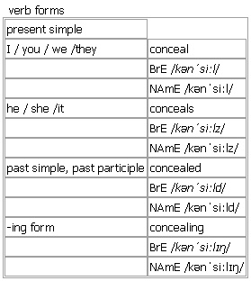 con·ceal [conceal conceals concealed concealing] BrE [kənˈsiːl] NAmE [kənˈsiːl] verb (formal)