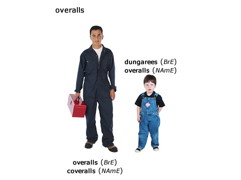 cov·er·alls [coveralls] BrE [ˈkʌvərɔːlz] NAmE [ˈkʌvərɔːlz] (NAmE) (BrE overalls) noun plural a loose piece of clothing like a shirt and trousers/pants in one piece, made of heavy cloth and usually worn over other clothing by workers doing dirty work See also: ↑overalls