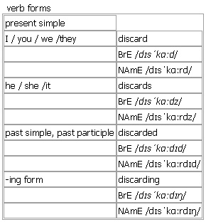 verb BrE [dɪsˈkɑːd] ; NAmE [dɪsˈkɑːrd]