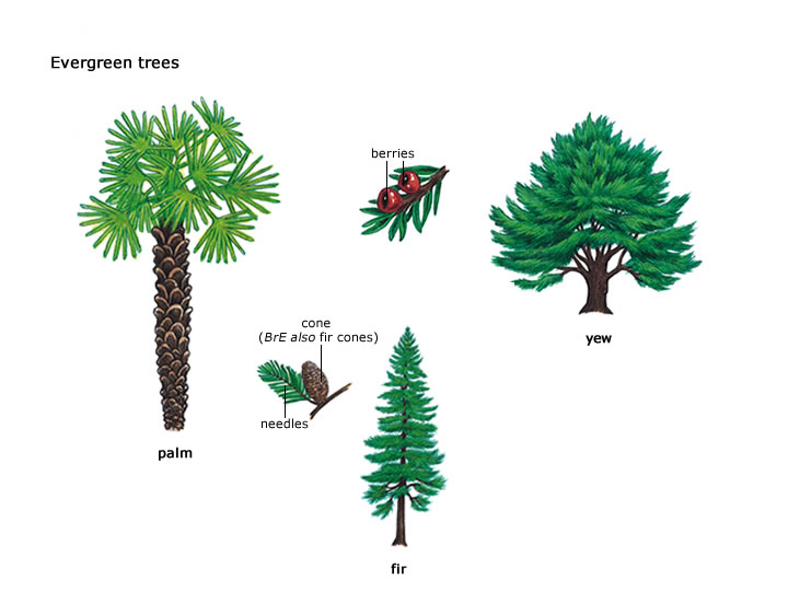 ▪ I. ever·green [evergreen evergreens] BrE [ˈevəɡriːn] NAmE [ˈevərɡriːn] noun  a tree or bush that has green leaves all through the year •Few plants grow under the dense shade cast by the evergreens. compare ↑conifer, ↑deciduous ▪ II. ever·green adjective •evergreen shrubs • (figurative)a new production of Rossini's evergreen (= always popular) opera Main entry: ↑evergreenderived