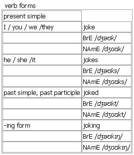 joke [joke jokes joked joking] noun, verb BrE [dʒəʊk] NAmE [dʒoʊk] noun 1. something that you say or do to make people laugh, for example a funny story that you tell • I can't tell jokes. • She's always cracking jokes. •They often make jokes at each other's expense. •I didn't get the joke (= understand it). •I wish he wouldn't tell dirty jokes (= about sex). •I only did it as a joke (= it was not meant seriously). see also ↑in-joke, ↑practical joke 2. singular (informal)a person, thing or situation that is ridiculous or annoying and cannot be taken seriously • This latest pay offer is a joke. see also ↑jocular Word Origin: late 17th cent. (originally slang): perhaps from Latin jocus ‘jest, wordplay’. Culture: humour A sense of humour (AmE humor), an ability to see the funny side of life, is considered essential by most British and American people. Everyone needs to be able to laugh at themselves sometimes, and to recognize that the situation they are in may look funny to others. It is considered a serious criticism of somebody to say that they have no sense of humour. Some people have a dry sense of humour, and can keep a straight face (= not smile) and let their voice sound as though they are being serious when they are joking. Other people are said to be witty (= show a very clever type of humour). A person’s sense of humour is influenced by many things, including family and social background and age. British and American humour on stage have some important differences, although the fact that some comedy television programmes are popular in both countries shows that there is some common ground. American sitcoms (= shows in which the humour comes from situations that the characters get into) such as ↑Frasier, ↑Friends and ↑Seinfeld are as popular in Britain as Britain’s own ↑Vicar of Dibley and ↑Office. Sitcoms often have a laugh track (= a recording of people laughing) so that the audience at home will laugh in the right places. In many sitcoms gentle fun is made of ordinary life without the risk of causing anyone serious offence. American stage humour is more direct than British comedy. In the American series Cheers, for instance, the humour comes from characters like Coach and Woody being more stupid than any real person could possibly be. But in the British comedy ↑Fawlty Towers Basil Fawlty’s funny characteristics are exaggerated versions of those found in the type of Englishman he represents. Slapstick comedy, which is based on people falling over, bumping into each other, etc. is now less popular in Britain. British comedy makes frequent use of irony, humour which depends on a writer or performer suggesting the opposite of what is actually expressed. Many novels, films, stage plays, etc. use irony, even when discussing serious subjects such as death. Popular humour may sometimes rely on double entendre (= using a phrase that can be understood in two ways, one of which is usually sexual) or on innuendo (= making an indirect suggestion of something rude). These were both used a lot in the popular series of Carry On films that began in the 1960s. Satire (= making people or institutions appear ridiculous to show how foolish or bad they are) is an important element of popular British political comedy programmes such as ↑Yes, Minister and Spitting Image. One of the most successful British comedy series, which also became popular in the US, was ↑Monty Python's Flying Circus. It had a zany (= odd and silly) and satirical humour which appealed especially to young people. Comic strips and cartoons, whether printed in newspapers, shown on television or the Internet or made into films, are popular in both the US and Britain. The most famous include ↑Peanuts, ↑Tom and Jerry and ↑Simpsons. Stand-up comedians like Bill Cosby and Jerry Seinfeld in the US and in Britain Peter Kay, Eddie Izzard and Jo Brand, perform on television or in clubs, telling gags (= jokes) and funny stories which end with a punch line, the part where the audience is supposed to laugh. Many comedians tell jokes that are funny because of some racial or sexual innuendo, and this may be considered unacceptable for family audiences. In Britain, common targets of comedians include mothers-in-law, foreigners and people from particular parts of Britain, especially Scotsmen (who are supposed to hate spending money) and Irishmen (who are supposed to be stupid). Many people find such jokes offensive, and the new generation of comedians has avoided making fun of people’s race. Another form of comedy is for people from minority groups to make fun of their own customs and attitudes. Many people tell jokes at school, at home and at the office. People may start a speech with a joke or funny story to help break the ice (= make people feel more relaxed). Children tell jokes that involve a play on words, such as ↑knock-knock jokes or ‘What do you call...’ jokes e.g. ‘What do you call a man with a seagull on his head?’ ‘Cliff’. Adults sometimes tell what in the US are called Polish jokes because they are about a particular national or racial group. There are also jokes about blondes (= women with fair hair) being stupid, and lawyers having bad characters. For instance, ‘Why do they do lab experiments on lawyers?’ ‘Because there are some things that even a rat won’t do.’ On the whole this type of humour is considered dated and in bad taste. Light bulb jokes make fun of the worst characteristic of any group of people, by suggesting mistakes they would make in trying to change a light bulb: ‘How many psychologists does it take to change a light bulb?’ - ‘Just one, but it has to really want to change.’ Practical jokes involve tricking people, and are not usually very popular, but on ↑April Fool's Day (1 April) people traditionally play practical jokes on each other. Newspapers often include a story that is not true hoping that some readers will believe i