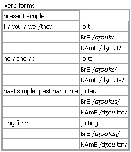 jolt [jolt jolts jolted jolting] verb, noun BrE [dʒəʊlt] NAmE [dʒoʊlt]