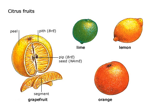 lime [lime limes limed liming] noun, verb BrE [laɪm] NAmE [laɪm] noun  1. (also quick·lime)uncountable a white substance obtained by heating ↑limestone, used in building materials and to help plants grow 2. countable, uncountable a small green fruit, like a lemon, with a lot of sour juice, used in cooking and in drinks; the juice of this fruit •lime juice •slices of lime 3. (also ˈlime tree)countable a tree on which limes grow 4. (also ˈlime tree, ˈlinden tree, linden)countable a large tree with light green heart-shaped leaves and yellow flowers •an avenue of limes 5. uncountable = ↑lime green Word Origin: n. sense 1 and v. Old English līm Germanic Dutch lijm German Leim ↑loamn. senses 2 to 3 mid 17th cent. French Provençal limo Spanish lima Arabic līma ↑lemonsense 4 early 17th cent. line Old English lind ‘lime tree’ Example Bank: •Serve the dish garnished with wedges of lime. verb ~ sth to add the substance ↑lime to soil, especially in order to control the acid in it Verb forms: Word Origin: n. sense 1 and v. Old English līm Germanic Dutch lijm German Leim ↑loamn. senses 2 to 3 mid 17th cent. French Provençal limo Spanish lima Arabic līma ↑lemonsense 4 early 17th cent. line Old English lind ‘lime tree’ See also: ↑lime tree ▪ ↑linden ▪ ↑quicklime