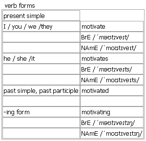 mo·tiv·ate AW [motivate motivates motivated motivating] BrE [ˈməʊtɪveɪt] NAmE [ˈmoʊtɪveɪt] verb