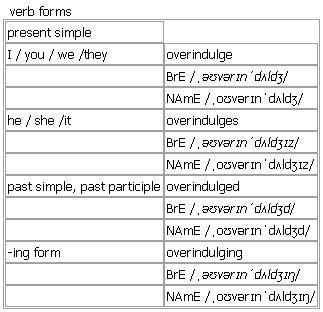 over·in·dulge 7 [overindulge] BrE [ˌəʊvərɪnˈdʌldʒ] NAmE [ˌoʊvərɪnˈdʌldʒ] verb