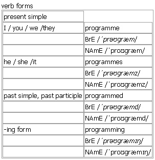 pro·gramme [programme programmes programmed programming] (BrE) (NAmE pro·gram)noun, verb BrE [ˈprəʊɡræm] NAmE [ˈproʊɡræm] noun PLAN 1. a plan of things that will be done or included in the development of sth •to launch a research programme •a training programme for new staff •a programme of economic reform ON TV/RADIO 2. something that people watch on television or listen to on the radio •a news programme • Did you see that programme on India last night? • What time is that programme on? •Which programme do you want to watch? FOR PLAY/CONCERT 3. a thin book or a piece of paper that gives you information about a play, a concert, etc •a theatre programme ORDER OF EVENTS 4. an organized order of performances or events Syn: ↑line-up •an exciting musical programme •a week-long programme of lectures • What's the programme for (= what are we going to do) tomorrow? COURSE OF STUDY 5. (NAmE)a course of study •a school programme OF MACHINE 6. a series of actions done by a machine, such as a ↑washing machine • Select a cool programme for woollen clothes. Word Origin: early 17th cent. (in the sense ‘written notice’): via late Latin from Greek programma, from prographein ‘write publicly’, from pro ‘before’ + graphein ‘write’. Thesaurus: programme (BrE) (AmE program)noun 1. C •The univesrity is to launch a new research programme. plan • • initiative • • proposal • • policy • • strategy • • platform • • manifesto • |especially BrE scheme • a/an programme/plan/initiative/proposal/policy/strategy/platform/manifesto/scheme for sth a programme/plan/initiative/proposal/policy/strategy/scheme to do sth develop a programme/plan/initiative/proposal/policy/strategy implement a programme/plan/proposal/policy/strategy/manifesto/scheme 2. C •She presents a programme on Channel 4. show • • broadcast • • podcast • • webcast • • showing • • transmission • be on a programme/show a radio/television/TV programme/show/broadcast/transmission a live programme/show/broadcast/webcast/transmission see/watch a programme/show/broadcast/podcast/webcast/showing/transmission Programme or show? In British English programme is the more general word; show is used about fairly informal TV or radio and is usually used in compounds. In American English show is the more general word; program is used about more serious TV and radio and is usually used in compounds • (AmE) What time is that show on? • She hosts a news program on TV. 3. C •a programme of lectures schedule • • timetable • • itinerary • a busy/full/packed/detailed programme/schedule/timetable/itinerary a hectic/demanding programme/schedule/timetable agree on/draw up/follow/change a/an programme/schedule/timetable/itinerary keep/stick/adhere to a programme/schedule/timetable British/American: course / program In BrE course is used for a series of lessons or lectures on a particular subject: ▪ a physics course ◇ ▪ a course of ten lectures. In NAmE you would say: ▪ a physics course/program ◇ ▪ a program of ten lectures. In NAmE a course is usually an individual unit that forms part of a longer period of study: ▪ I have to take a physics course/class. This is called a module in Britain, especially in a college or university. In BrE course can also mean a period of study at a college or university: ▪ a two-year college course. In NAmE you would say: ▪ a two-year college program. Collocations: Television Watching watch television/TV/a show/(BrE) a programme/(NAmE) a program/a documentary/a pilot/a rerun/a repeat see (especially BrE) an ad/(especially NAmE) a commercial/the news/the weather catch/miss a show/a programme/a program/an episode/the news pick up/reach for/grab the remote (control) change/switch channel surf (through)/ (especially NAmE) flip through/ (especially BrE) flick through the channels sit in front of/switch on/switch off/turn on/turn off the television/the TV/the TV set have/install satellite (TV)/cable (TV)/a satellite dish Showing show a programme/a documentary/an ad/a commercial screen a programme/a documentary run an ad/a commercial broadcast/ (especially NAmE) air/repeat a show/a programme/a documentary/an episode/a series go out/air/be recorded live attract/draw (in)/pull (in) viewers be a hit with viewers/audiences/critics get (low/high) ratings Appearing be on/appear on television/TV/a TV show take part in a phone-in/a game show/a quiz show/a reality TV show host a show/a programme/series/a game show/a quiz show/a talk show/(BrE) a chat show be/become/work as a (BrE) TV presenter/talk-show host/sports commentator/anchorman/(BrE) newsreader read/present the news appear/perform live (on TV) Programme-making do/film/make a show/a programme/a documentary/an episode/a pilot/a series/an ad/a commercial work on a soap (opera)/a pilot (episode)/a sitcom write/produce a drama/sitcom/spin-off/comedy series Example Bank: •Female seals are needed for the breeding programme. •He appeared on the programme last night. •He is coordinating a Europe-wide research programme into treatments for prostate cancer. •He must attend a sex offenders' programme. •Her name doesn't appear in the concert programme. •How is the programme to be financed? •I saw a good programme on owls last night. •In today's programme, we'll be giving you advice on how to manage your money. •Mr Brown called for a national recovery programme. •Renewed fighting disrupted the relief programme. •She enrolled in a Master's programme in American history •She helped him get into a drug rehab programme. •Support is provided through the community outreach programme. •The college offers a wide variety of programmes of study. •The company began a major cost-cutting programme which involved 1 700 job losses. •The course leader outlined the programme we would be following. •The foundation's online learning programme brings the classroom to 