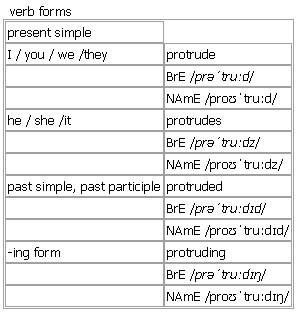 pro·trude [protrude protrudes protruded protruding] BrE [prəˈtruːd] NAmE [proʊˈtruːd] verb intransitive (formal)