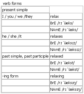 relax AW [relax relaxes relaxed relaxing] BrE [rɪˈlæks] NAmE [rɪˈlæks] verb 1. intransitive to rest while you are doing sth enjoyable, especially after work or effort Syn: ↑unwind • Just relax and enjoy the movie. • I'm going to spend the weekend just relaxing. •~ with sth When I get home from work I like to relax with the newspaper. 2. intransitive, transitive ~ (sb) to become or make sb become calmer and less worried • I'll only relax when I know you're safe. • Relax! Everything will be OK. 3. intransitive, transitive to become or make sth become less tight or stiff • Allow your muscles to relax completely. •~ sth The massage relaxed my tense back muscles. •He relaxed his grip on her arm. • (figurative)The dictator refuses to relax his grip on power. 4. transitive ~ sth to allow rules, laws, etc. to become less strict • The council has relaxed the ban on dogs in city parks. 5. transitive ~ sth to allow your attention or effort to become weaker • You cannot afford to relax your concentration for a moment. Verb forms: Word Origin: late Middle English: from Latin relaxare, from re- (expressing intensive force) + laxus ‘lax, loose’. Thesaurus: relax verb 1. I •Just relax and enjoy the movie. unwind • • take it/things easy • • sit back • • put your feet up • • rest • |informal chill (out) • • hang out • |BrE potter • |AmE putter • try to/help sb (to) relax/unwind/rest just relax/unwind/take it easy/sit back/rest/hang out/potter/putter 2. I •Relax! Everything will be OK. calm down • • cool • • pull yourself together • things calm down/cool off Relax or calm down? People can relax; people or a situation can calm down. To relax is to stop feeling worried. Calm down is more about behaviour than feelings: you may still feel worried but you manage to behave in a calm way. 3. I, T •He relaxed his grip on her arm. loosen • • slacken • • release • Opp: tighten, Opp: tense relax/loosen/slacken/release your grip/hold relax/loosen/slacken your muscles loosen/slacken a knot/tie/belt Example Bank: •He gradually relaxed and began to enjoy himself. •He was relaxing on the couch with a book. •His severe expression relaxed into a half-smile. •Jenna relaxed against the pillows. •Julie seems to be relaxing a little now. •Just relax and take it easy. •Just try to relax completely. •She instantly relaxed at the sight of him. •She realized how tense she was and consciously relaxed. •Use music to help you relax. •I'll only relax when I know you're safe. •I'm going to spend the weekend just relaxing. •When I get home from work I like to relax with a glass of wine.