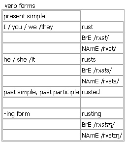 rust [rust rusts rusted rusting] noun, verb BrE [rʌst] NAmE [rʌst]