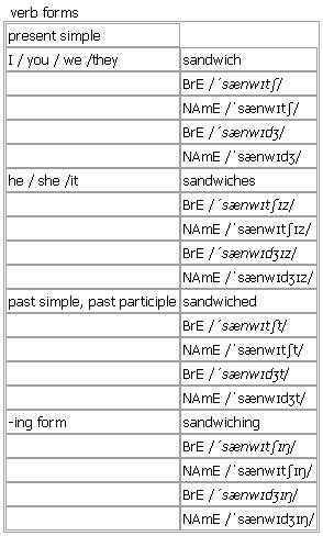 sand·wich [sandwich sandwiches sandwiched sandwiching] noun, verb BrE [ˈsænwɪtʃ] NAmE [ˈsænwɪtʃ] BrE [ˈsænwɪdʒ] NAmE [ˈsænwɪdʒ] noun 1. (also BrE informal sar·nie)two slices of bread, often spread with butter, with a layer of meat, cheese, etc. between them •a cheese sandwich •a sandwich bar (= a place that sells sandwiches ) see also ↑club sandwich, ↑open sandwich 2. (BrE) (in compounds)a ↑sponge cake consisting of two layers with jam and/or cream between them •a chocolate sponge sandwich •a sandwich tin (= for baking such a cake in) Word Origin: mid 18th cent.: named after the 4th Earl of Sandwich (1718–92), an English nobleman said to have eaten food in this form so as not to leave the gaming table. Example Bank: •He made two rounds of tuna sandwiches. •What would you like in your sandwich? •a peanut butter and jelly sandwich Derived: ↑sandwich A and B together ▪ ↑sandwich somebody between somebody verb Verb forms: Word Origin: mid 18th cent.: named after the 4th Earl of Sandwich (1718–92), an English nobleman said to have eaten food in this form so as not to leave the gaming table. See also: ↑sarnie