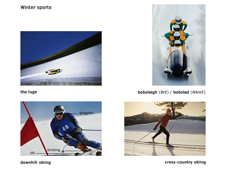 ski [ski skis skied skiing ski-ing] noun, adjective, verb BrE [skiː] NAmE [skiː] noun (pl. skis) 1. one of a pair of long narrow pieces of wood, metal or plastic that you attach to boots so that you can move smoothly over snow •a pair of skis 2. = ↑waterski Word Origin: mid 18th cent.: from Norwegian, from Old Norse skíth ‘billet, snowshoe’. Example Bank: •She was on a ski trip in Colorado. •The children go to school on skis. adjective only before noun connected with the sport of skiing •ski boots •the ski slopes Word Origin: mid 18th cent.: from Norwegian, from Old Norse skíth ‘billet, snowshoe’. verb (ski·ing, skied, skied) 1. intransitive (+ adv./prep.) to move over snow on ↑skis, especially as a sport •How well do you ski? •We skied down the slope one by one. 2. go skiingintransitive to spend time ↑skiing for pleasure •We went skiing in France in March. see also ↑skiing, ↑waterski Verb forms: Word Origin: mid 18th cent.: from Norwegian, from Old Norse skíth ‘billet, snowshoe’.