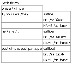 suf·fice [suffice suffices sufficed sufficing] BrE [səˈfaɪs] NAmE [səˈfaɪs] verb intransitive (formal)