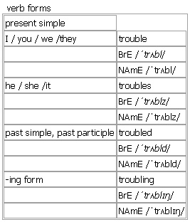 trouble [trouble troubles troubled troubling] noun, verb BrE [ˈtrʌbl] NAmE [ˈtrʌbl]