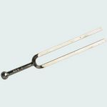 a small metal instrument with two long parts joined together at one end, that produces a particular musical note when you hit it and is used in tuning musical instruments