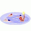 a game played by two teams of people swimming in a swimming pool. Players try to throw a ball into the other team's goal.