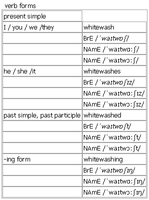 white·wash [whitewash whitewashes whitewashed whitewashing] noun, verb BrE [ˈwaɪtwɒʃ] NAmE [ˈwaɪtwɑːʃ] NAmE [ˈwaɪtwɔːʃ]