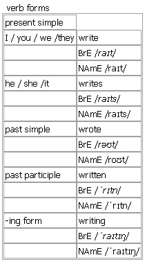 write [write writes wrote written writing] BrE [raɪt] NAmE [raɪt] verb (wroteBrE [rəʊt] ; NAmE [roʊt] writ·tenBrE [ˈrɪtn] ; NAmE [ˈrɪtn] ) LETTERS/NUMBERS 1. intransitive, transitive to make letters or numbers on a surface, especially using a pen or a pencil • In some countries children don't start learning to read and write until they are six. •~ in/on/with sth Please write in pen on both sides of the paper. •I haven't got anything to write with. •~ sth Write your name at the top of the paper. •The teacher wrote the answers on the board. •The ‘b’ had been wrongly written as a ‘d’. BOOK/MUSIC/PROGRAM 2. transitive, intransitive to produce sth in written form so that people can read, perform or use it, etc •~ sth to write a novel/a song/an essay/a computer program, etc. •Who was ‘The Grapes of Wrath’ written by? •Which opera did Verdi write first? •~ sth about/on sth He hopes to write a book about his experiences one day. • She had to write a report on the project. •~ (about sth) I wanted to travel and then write about it. •He writes for the ‘New Yorker’ (= works as a writer). •No decision has been made at the time of writing. •~ sb sth She wrote him several poems. A LETTER 3. intransitive, transitive to put information, a message of good wishes, etc. in a letter and send it to sb • Bye! Don't forget to write. • Can you write and confirm your booking? •I'm writing to enquire about language courses. •~ to sb She wrote to him in France. •~ sth (to sb) I wrote a letter to the Publicity Department. •~ sb sth I wrote the Publicity Department a letter. •~ that… She wrote that they were all fine. •~ sb (NAmE)Write me while you're away. •~ sb that… (NAmE)He wrote me that he would be arriving Monday. •~ doing sth They wrote thanking us for the present. STATE IN WRITING 4. transitive, intransitive to state the information or the words mentioned •~ that… In his latest book he writes that the theory has since been disproved. •~ of sth Ancient historians wrote of a lost continent beneath the ocean. •+ speech ‘Of all my books,’ wrote Dickens, ‘I like this the best.’ CHEQUE/FORM 5. transitive to put information in the appropriate places on a cheque or other form •~ sth (out) to write out a cheque •~ sb (out) sth I'll write you a receipt. • The doctor wrote her a prescription for more antibiotics. COMPUTING 6. transitive, intransitive ~ (sth) to/onto sth to record data in the memory of a computer •An error was reported when he tried to write data to the file for the first time. OF PEN/PENCIL 7. intransitive to work correctly or in the way mentioned • This pen won't write. more at not worth the paper it's written/printed on at ↑worth adj. Idioms: ↑have somebody written all over it ▪ ↑nothing to write home about ▪ ↑that's all she wrote ▪ ↑written all over somebody's face Derived: ↑write away ▪ ↑write back ▪ ↑write in ▪ ↑write off ▪ ↑write somebody in ▪ ↑write somebody off ▪ ↑write somebody out ▪ ↑write something down ▪ ↑write something into something ▪ ↑write something off ▪ ↑write something out ▪ ↑write something up Verb forms: Word Origin: Old English wrītan ‘score, form (letters) by carving, write’, of Germanic origin; related to German reissen ‘sketch, drag’. Example Bank: •After ‘Tom Sawyer’, Twain went on to write several other classic books. •Children must learn to write neatly. •Doris writes with verve and wit. •He decided to write off for the brochure. •He had an extra clause written into his contract. •He has been commissioned to write a history of the town. •He has written extensively on the subject. •He set out to write a short book on taxation. •He still writes to me regularly. •He writes on political issues. •He wrote a list on the back of an old envelope. •He wrote in his journal. •He wrote to the editor of the newspaper. •Her novel was written under the pseudonym Currer Bell. •I write with an old fashioned pen. •I'd better write this down, otherwise I'll forget it. •She was busily writing in a notebook. •She was busily writing in an exercise book. •She was inspired to write the poem by a visit to the cathedral. •She writes for ‘The New York Times’. •She wrote back to him the next day. •She wrote in Arabic. •She wrote of her life in Africa. •The role was written specifically for Rita Hayworth. •The words were written in black ink. •a journalist who writes about problems in the developing world •an art critic who writes regularly in the French daily ‘Le Figaro’ •history written from the perspective of the losers •the ability to write clearly in plain English •Anicent historians wrote of a lost continent beneath the ocean. •He writes for ‘The New Yorker’. •I haven't got anything to write with. •I'll write you a receipt. •In his latest book he writes that the theory has since been disproved. •In some countries children don't start learning to read and write until they are six. •No decision had been made at the time of writing. •Please write clearly in black ink. •Someone had written a slogan on the wall. •Students will be expected to write their own computer programs. •The ‘b’ had been wrongly written as a ‘d’. •We teach children to write when they are about six. •Who was ‘Robinson Crusoe’ written by? •Write your answer out again on a new sheet of paper. •Write your name at the top of the page.