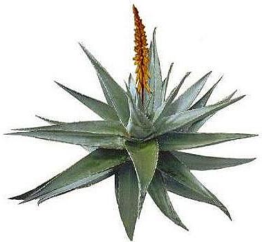 very short-stemmed plant with thick leaves with soothing mucilaginous juice; leaves develop spiny margins with maturity; native to Mediterranean region; grown widely in tropics and as houseplants • Syn: burn plant • Hypernyms: aloe