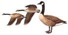 common greyish-brown wild goose of North America with a loud, trumpeting call