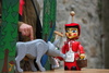 a girl in a fairy tale who meets a wolf while going to visit her grandmother