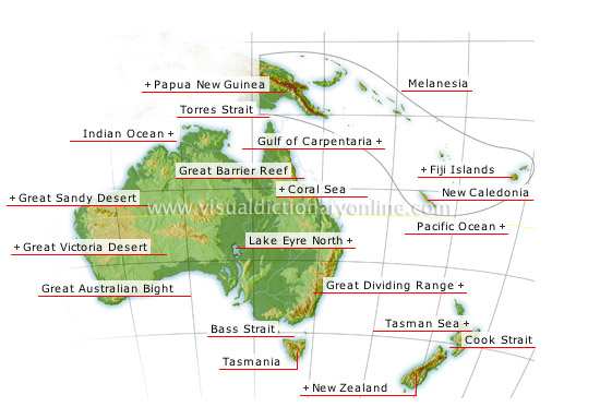 a large group of islands in the south Pacific including Melanesia and Micronesia and Polynesia (and sometimes Australasia and the Malay Archipelago) • Syn: Oceanica • Instance Hypernyms: archipelago • Part Holonyms: Pacific, Pacific Ocean • Part Meronyms: Melanesia, Micronesia, Polynesia