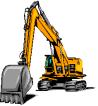 an excavator whose shovel bucket is attached to a hinged boom and is drawn backward to move earth