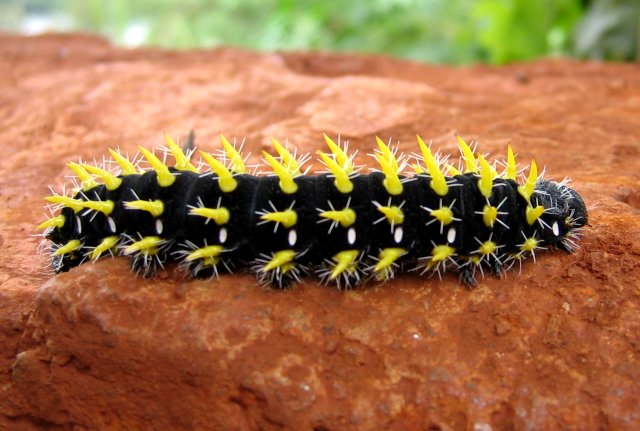 a wormlike and often brightly colored and hairy or spiny larva of a butterfly or moth (Freq. 1)