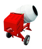 a machine with a large revolving drum in which cement is mixed with other materials to make concrete